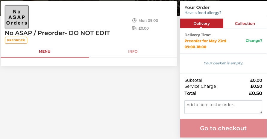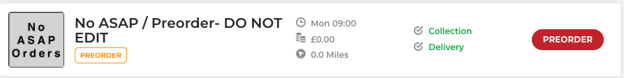 Outlet showing as ‘Preorder Now for Delivery’ on their menu page.