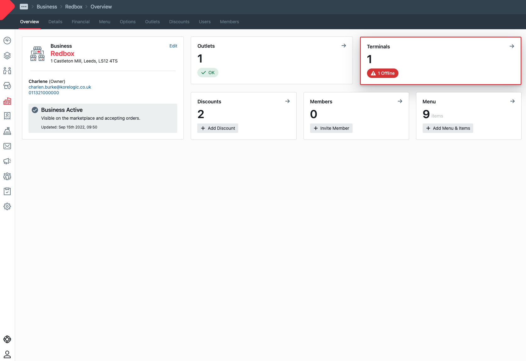 Terminals - This is a list of all the Terminals linked to outlets which are associated with your user account. See the Introduction to Terminals guide for more information.