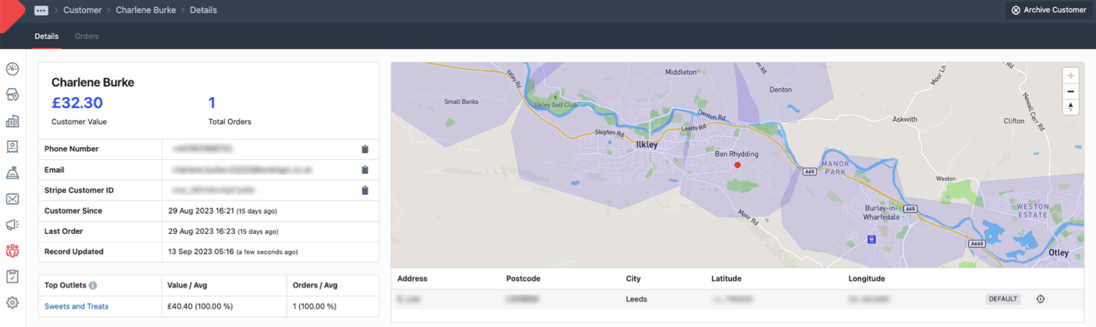 By selecting the customer’s name, the ‘Details’ page appears specific to that customer.