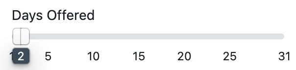 ‘Days Offered' can only be configured when 'Allow Preorders’ are enabled. The first slider sets when the first preorder slot/window will be offered, the second slider sets when the last preorder slot/window will be offered. See below table on slider setting examples: