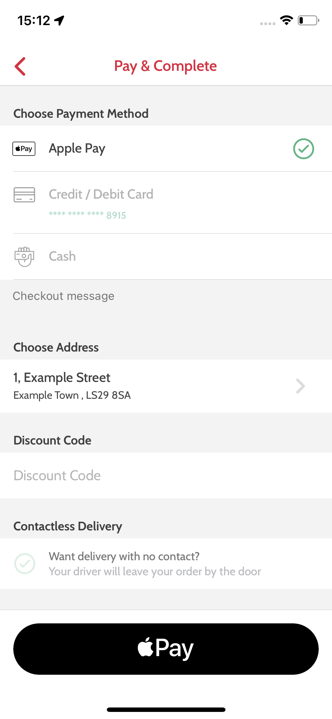 Ordering App (iOS device) - Pay and complete screen