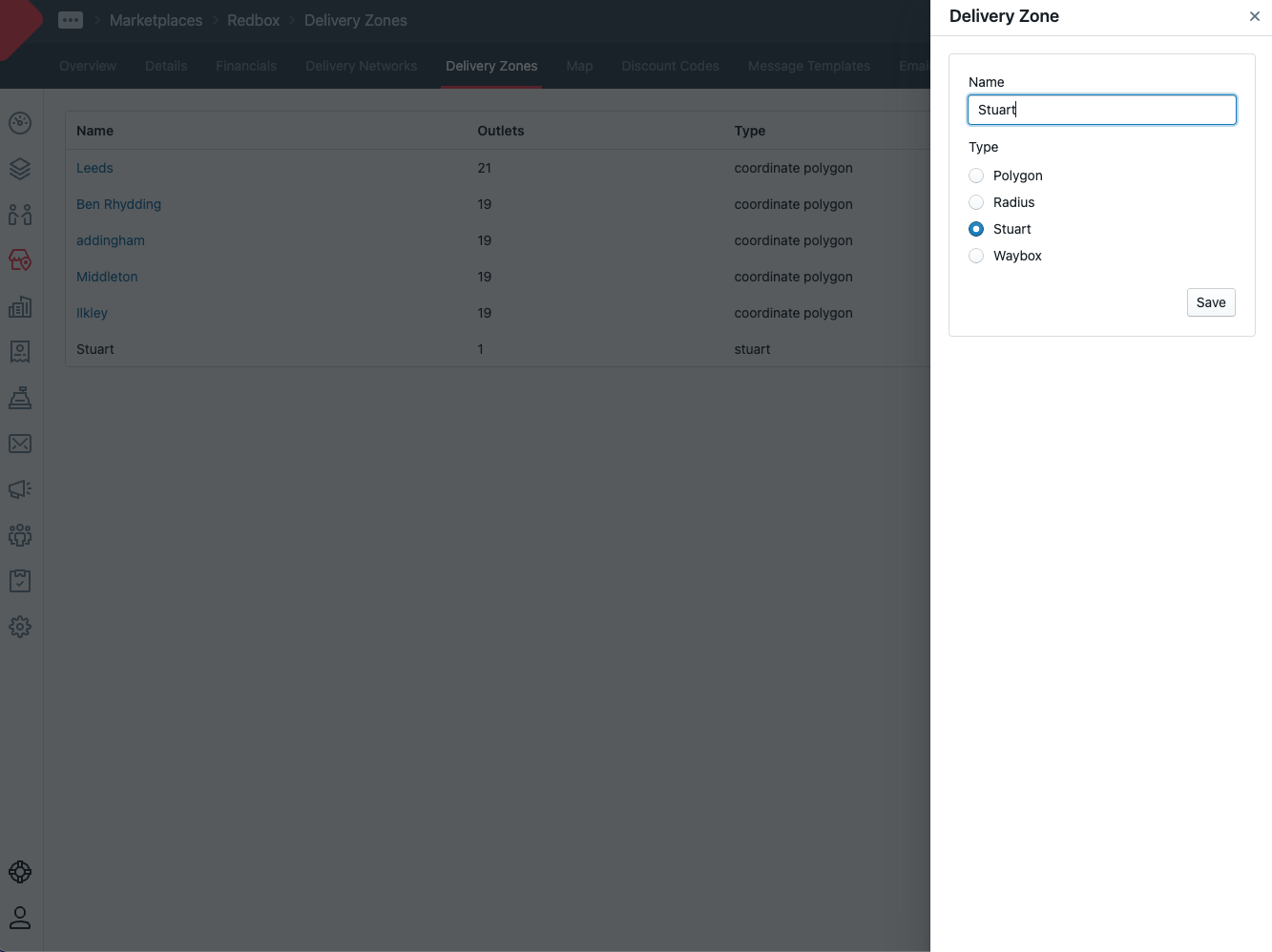 Add a Delivery Zone for Stuart, name it Stuart and Save.