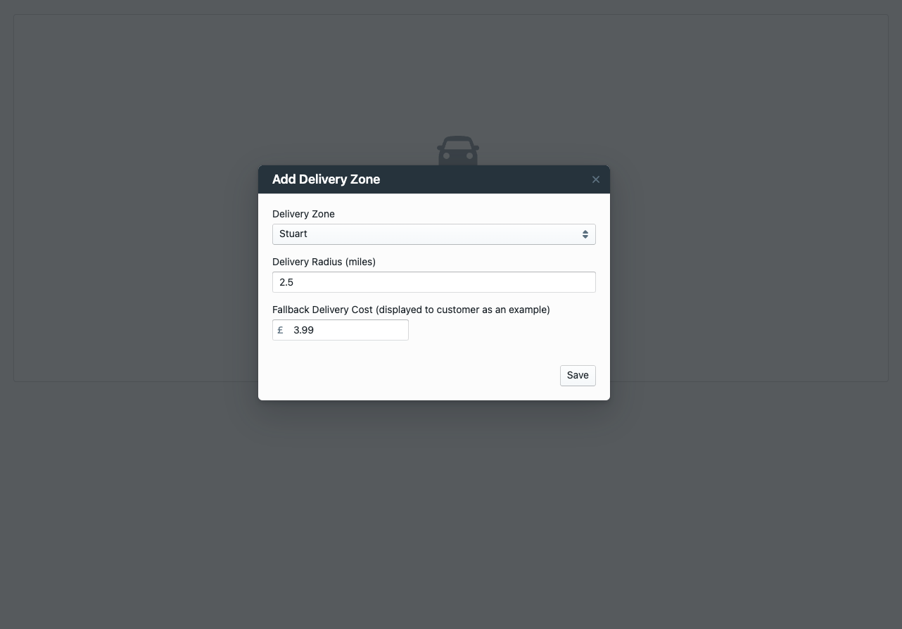 Set your Fallback Delivery Cost, this is displayed to the customer as a “Delivery From” cost if we do not have the exact location of the customer, the actual cost from Stuart displays later in the checkout.